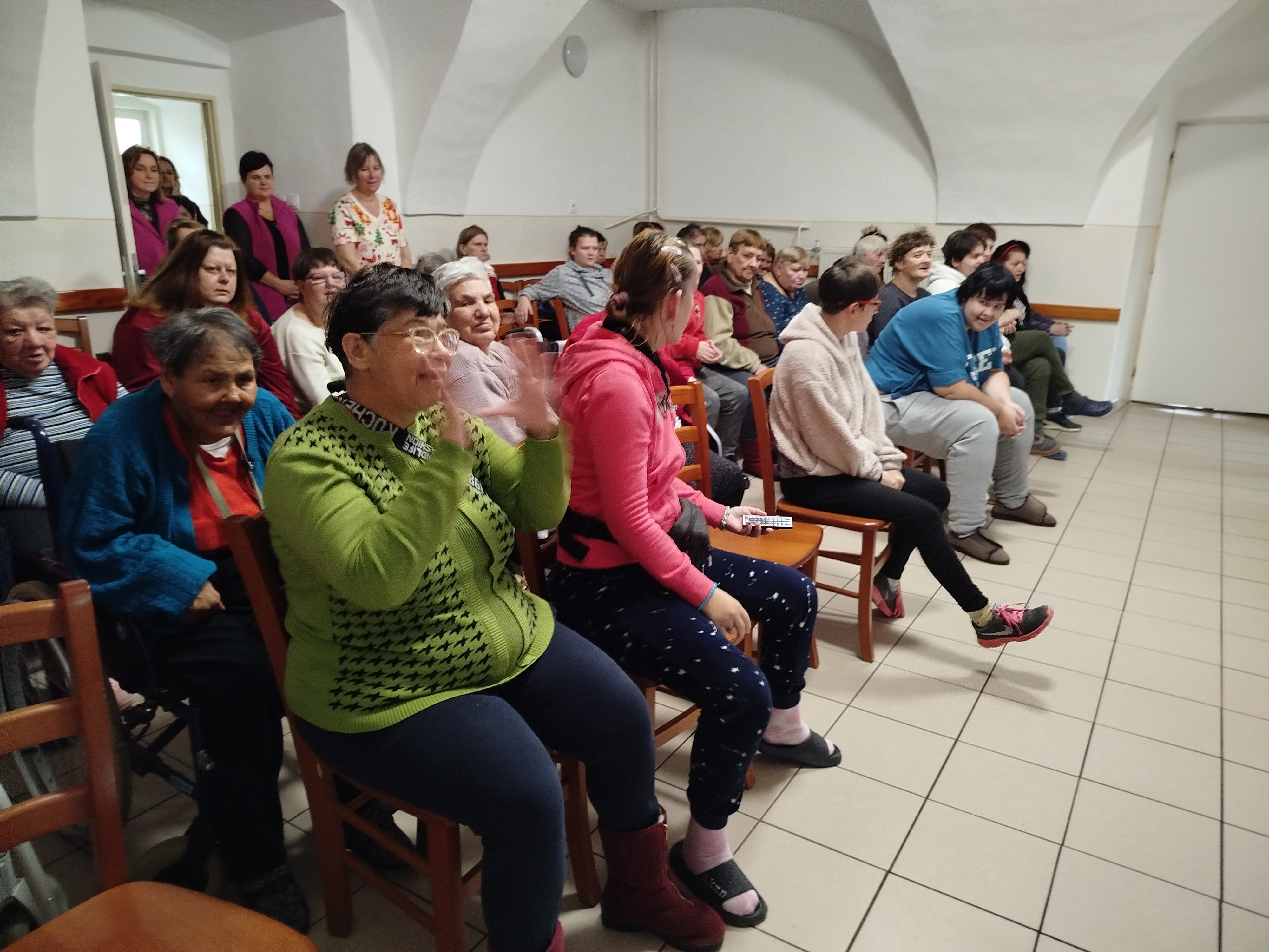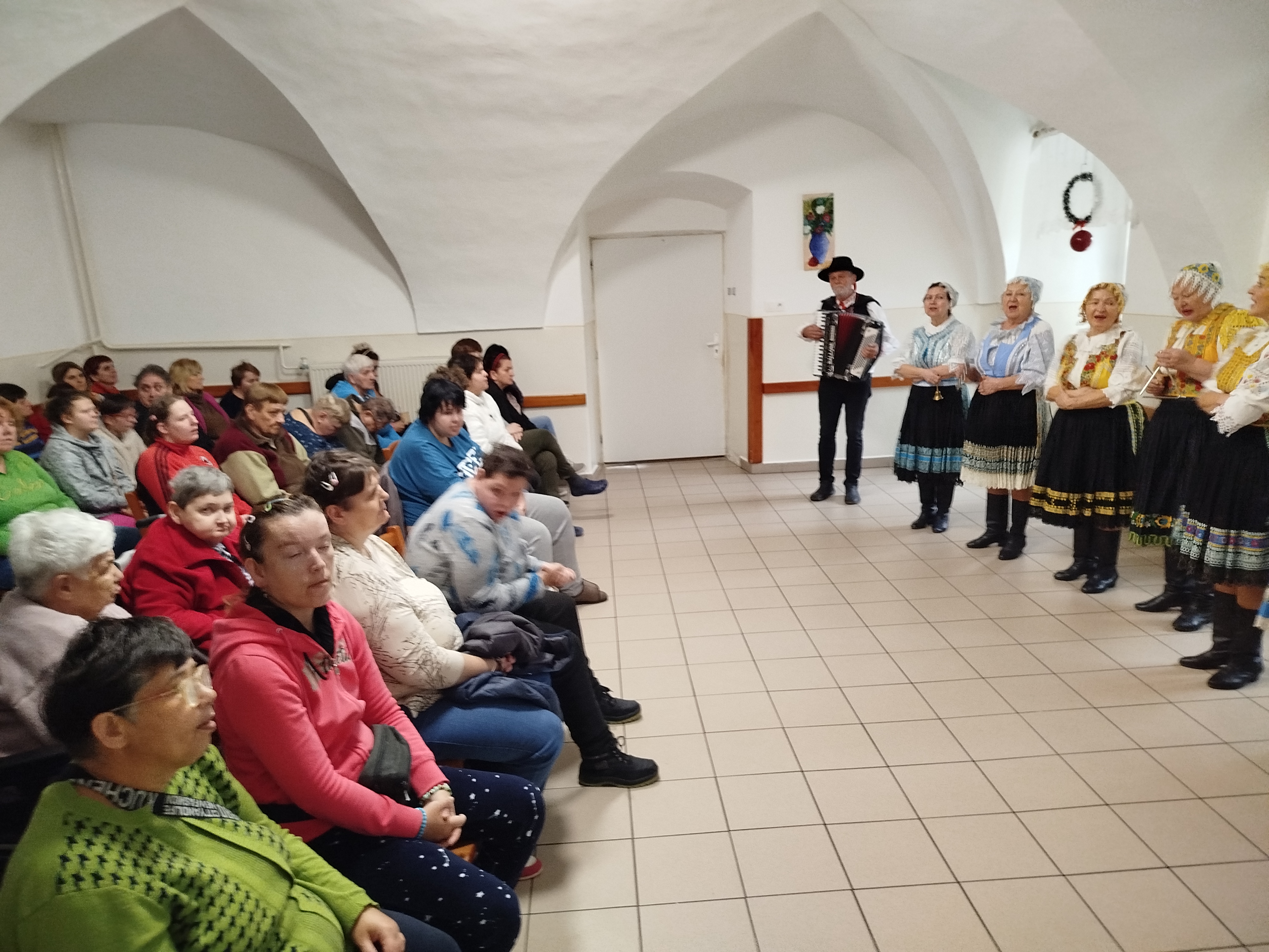 Krátko pred Vianocami nám prišla naladiť tú správnu vianočnú atmosféru svojím pásmom kolied folklórna skupina POVOJA z Piešťan. Naše klientky si zaspievali spolu s nimi a vystúpenie sa im veľmi páčilo.